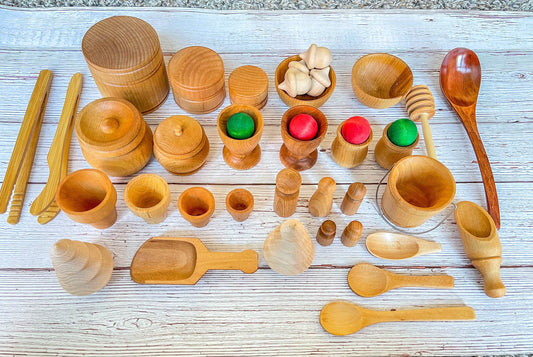7-pc Wooden Sensory Bin Tool Set: Montessori Toys